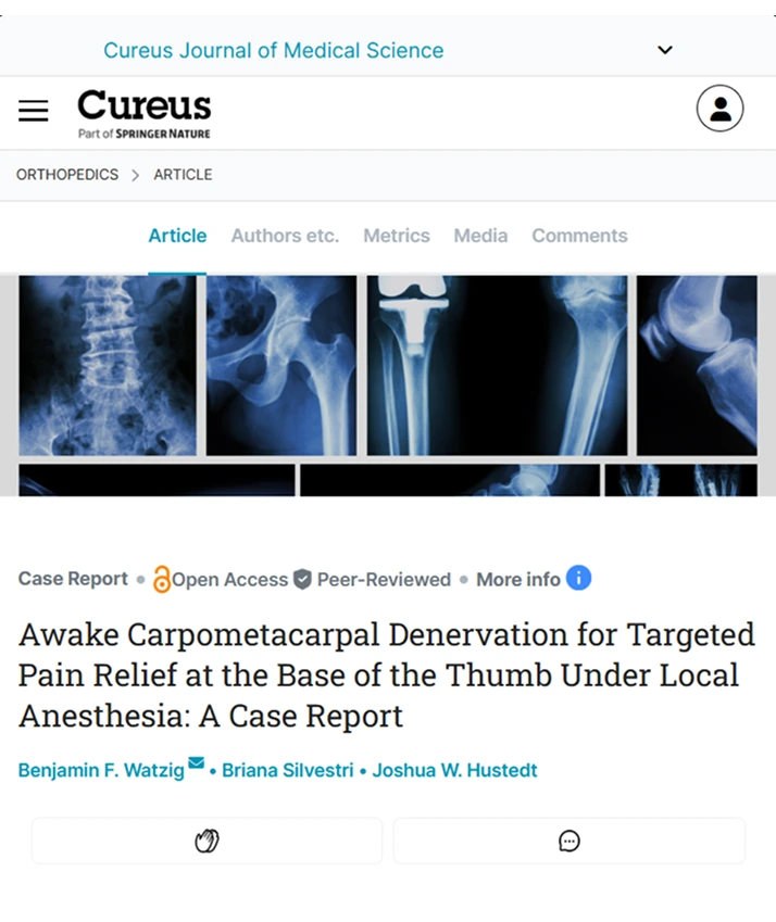 Awake Carpometacarpal Denervation for Targeted Pain Relief at the Base of the Thumb Under Local Anesthesia: A Case Report.