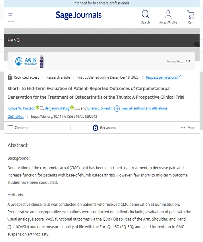 Short- to Mid-term Evaluation of Patient-Reported Outcomes of Carpometacarpal Denervation for the Treatment of Osteoarthritis of the Thumb